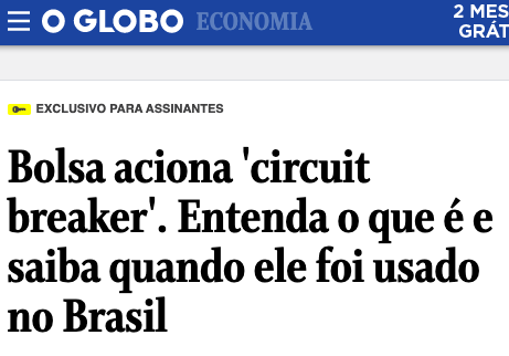 No dia 9 de março, quando o primeiro circuit breaker aconteceu, congelando o Ibovespa por alguns minutos…