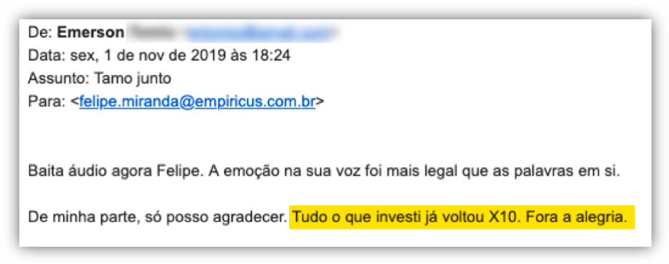 Isso se traduz numa multiplicação de capital significativa, de mais de 4x para o primeiro caso, por exemplo, mesmo depois da avalanche que atingiu os mercados nos últimos dias.