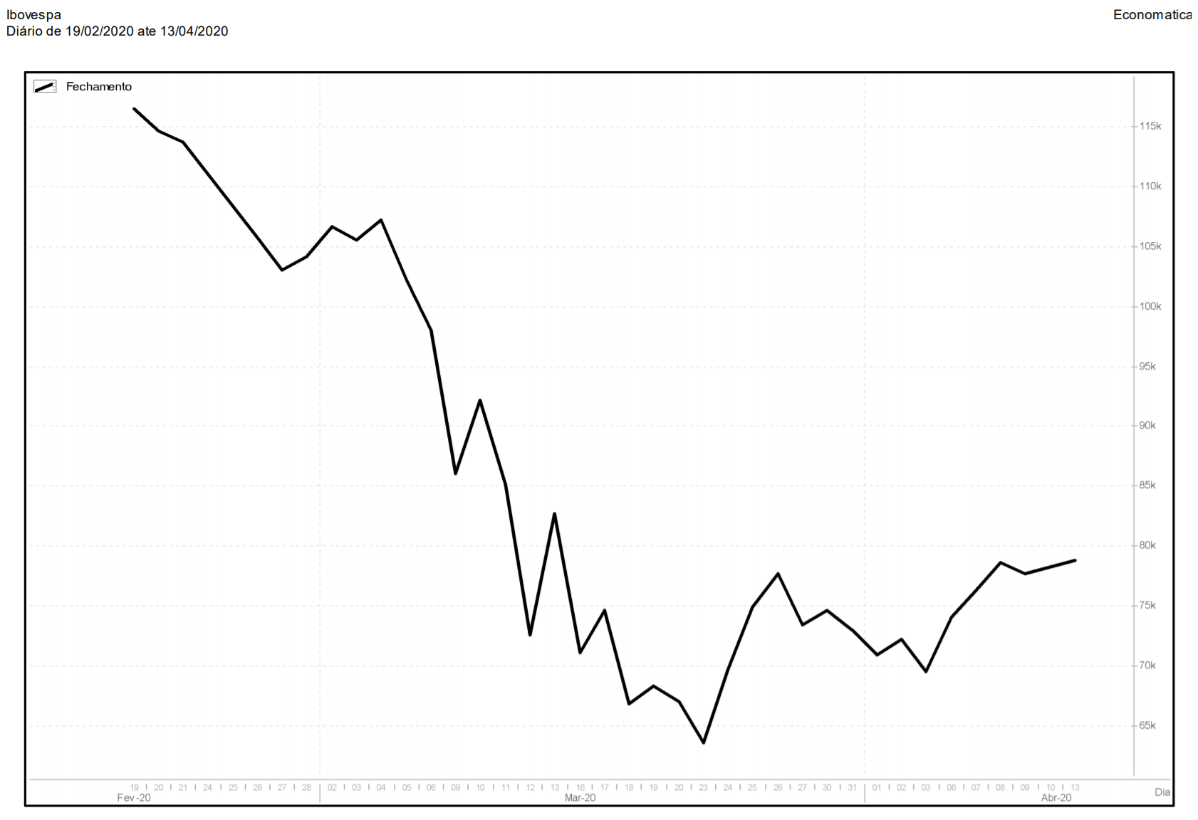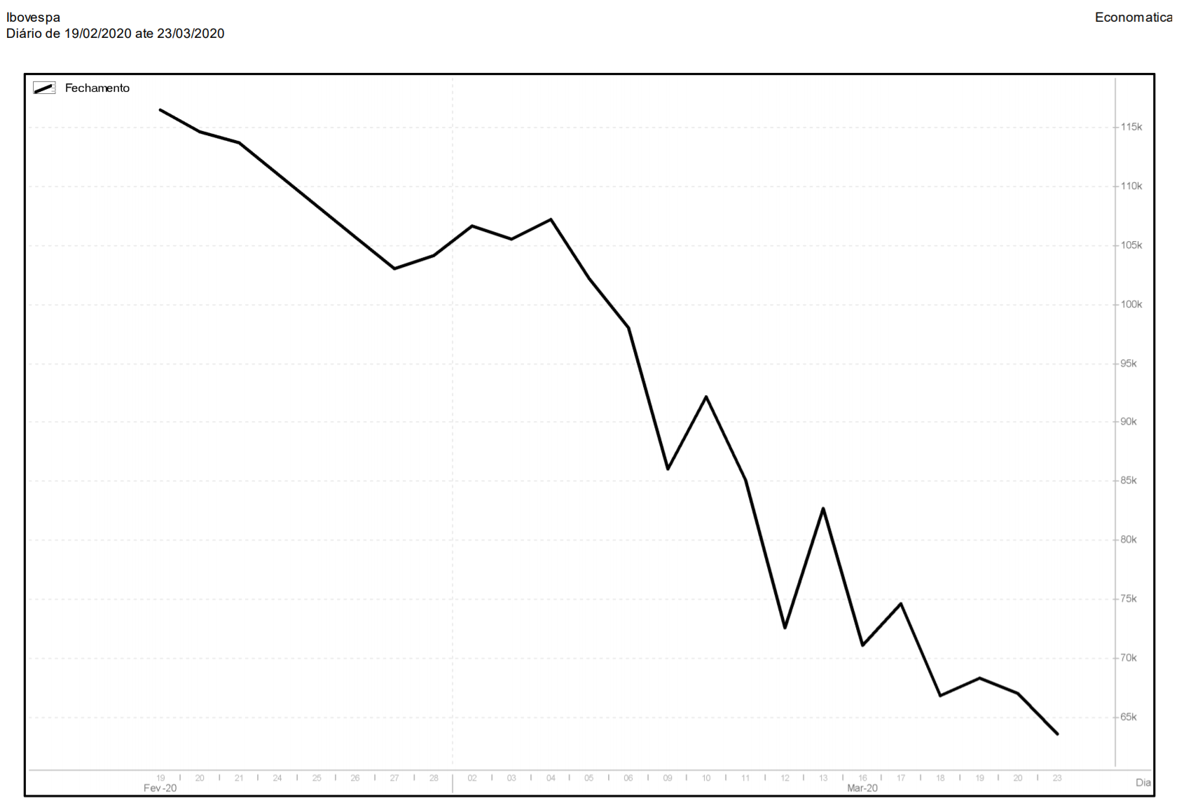 Sofremos uma queda aguda em questão de 1 mês, caindo dos 116 mil pontos, em fevereiro, aos 63 mil pontos em 23 de março: