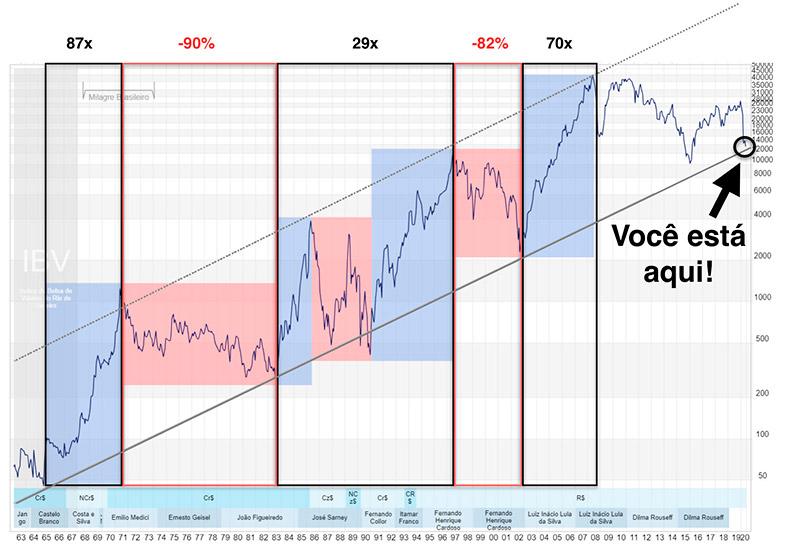 Estamos falando de ciclos de multiplicação de capital da ordem de 70x, 29x, 87x ao longo da história... isso, para a média do mercado brasileiro.