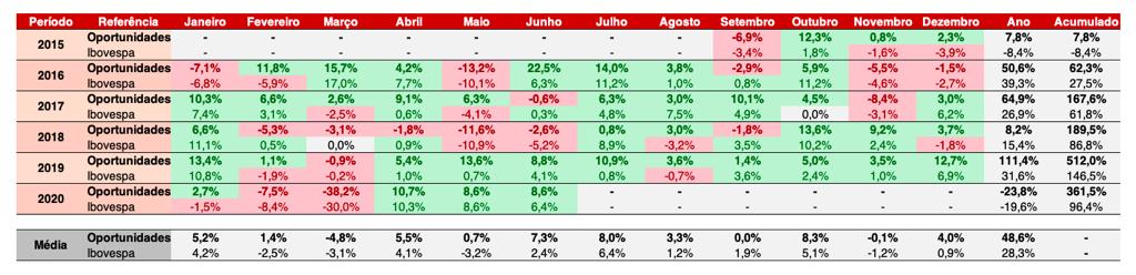 Repare que, desde 2015, no acumulado, nós NUNCA perdemos pro Ibovespa.