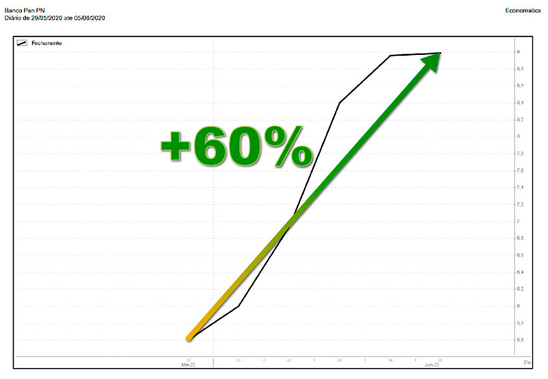 Como foi o caso de uma ação da minha Lista, que subiu 60% em questão de 5 pregões: