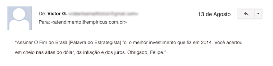 Lancei em 2014 "O Fim do Brasil", um documento em que eu denunciei todo o descalabro econômico da equipe de Dilma Rousseff.