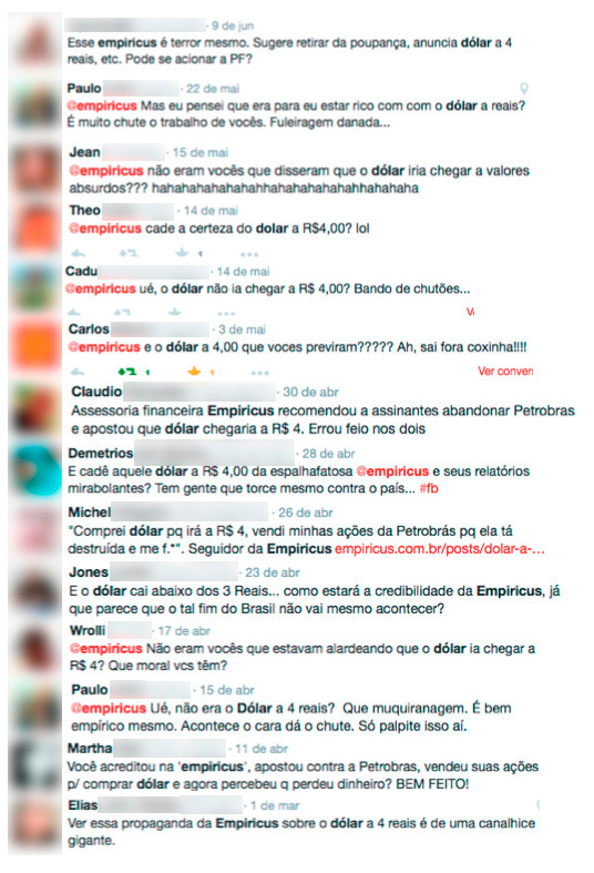 O exemplo mais emblemático foi a minha indicação para comprar dólares quando a moeda estava cotada a R$ 1,90 e, depois, para vender quando ela estava a R$ 4,25.