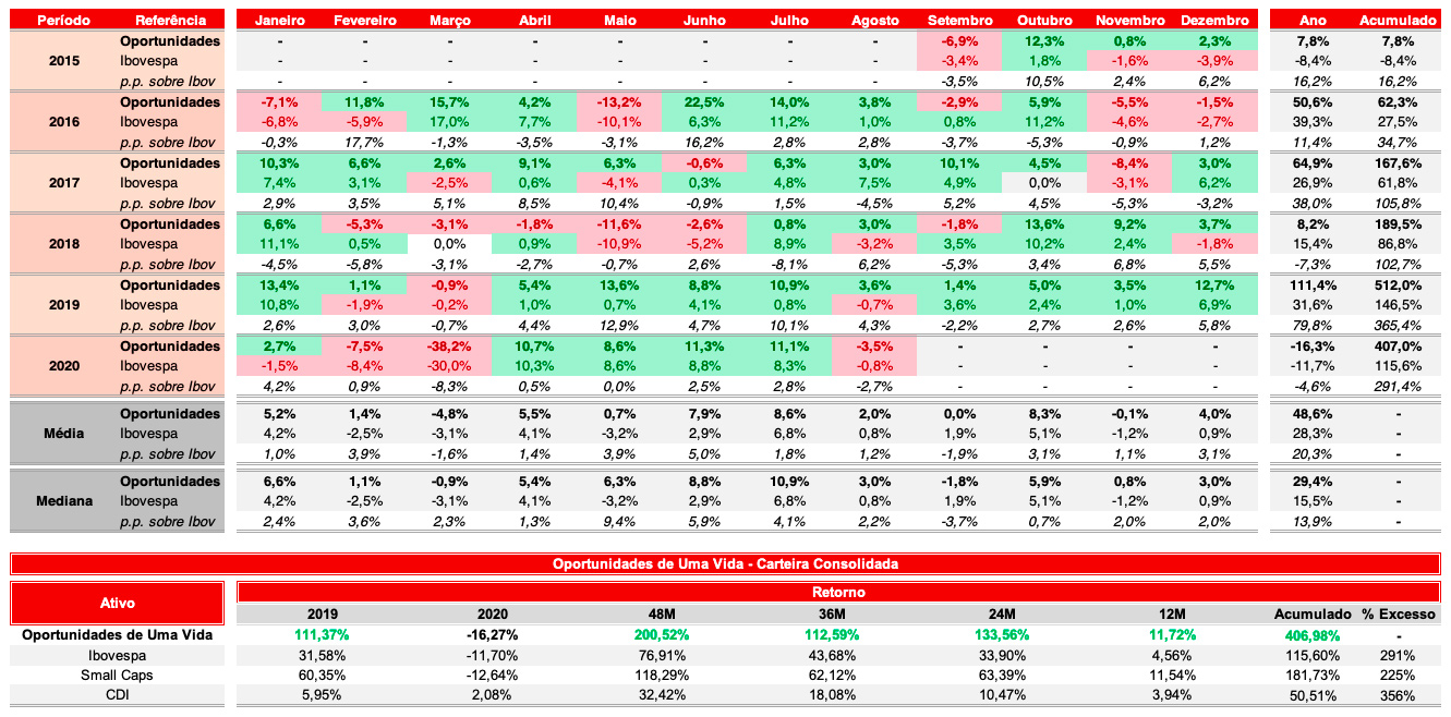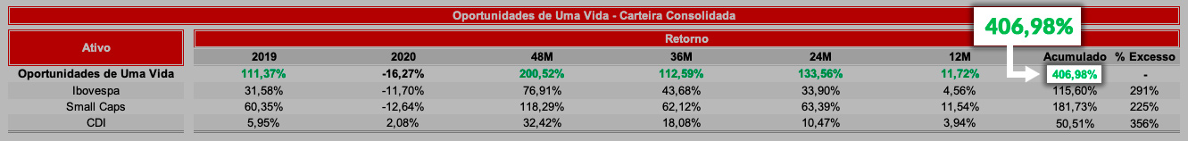Desde 2015, venho monitorando e recomendando uma carteira de ações, chamada Oportunidades de Uma Vida.