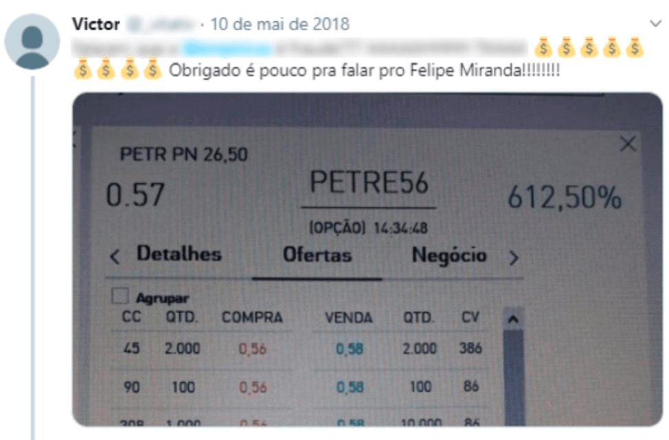 Ou você ganha dinheiro com essa ação ou eu vou me prejudicar frontalmente nesse nosso combinado.
