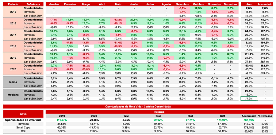 É dentro da série Palavra do Estrategista que ele seleciona e monitora a Lista de ações Oportunidades de Uma Vida.