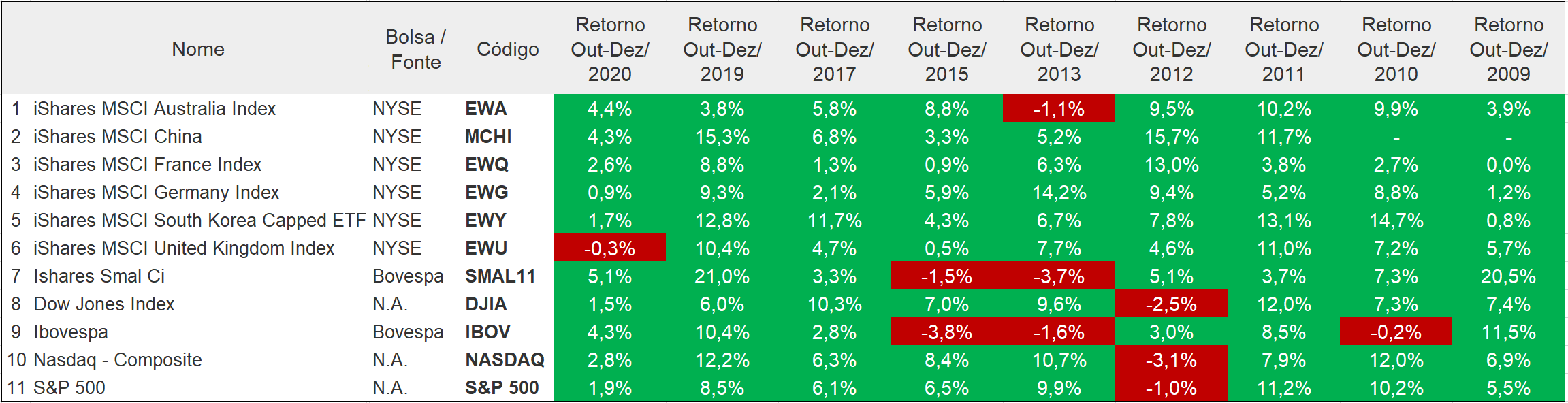 Esse é um período em que, historicamente, todas as Bolsas mundiais costumam subir.