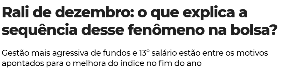 O Rali de Fim de Ano já começou, deve se intensificar e somos a economia mais defasada no mundo inteiro.