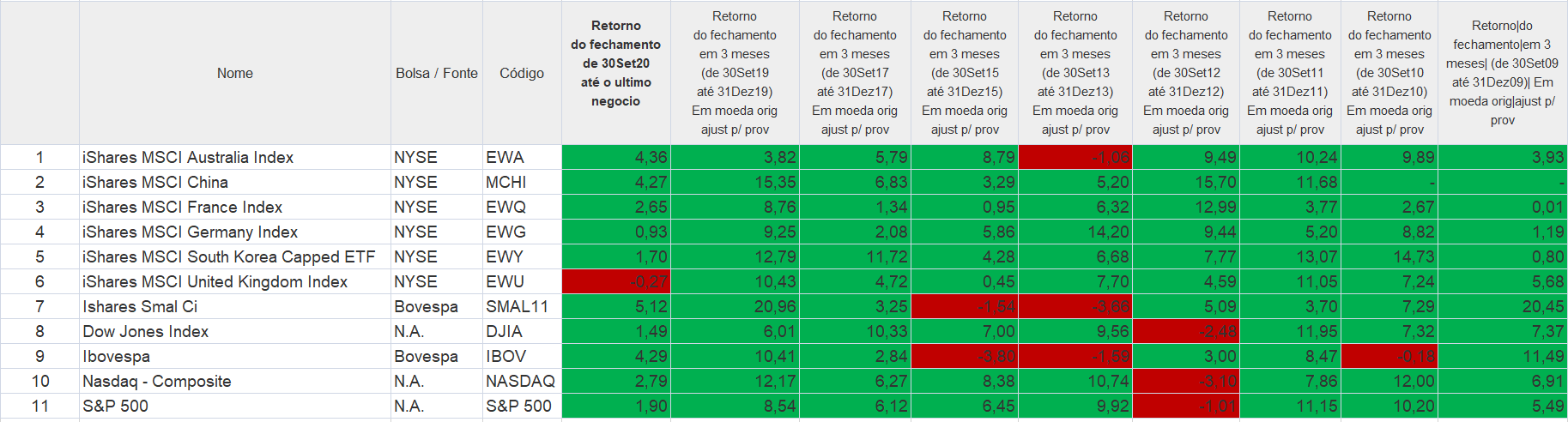 Se você pegar os dados das principais Bolsas: todas dos EUA, Ibovespa, China, França, Alemanha, Brasil, Austrália, Coréia do Sul, Inglaterra…