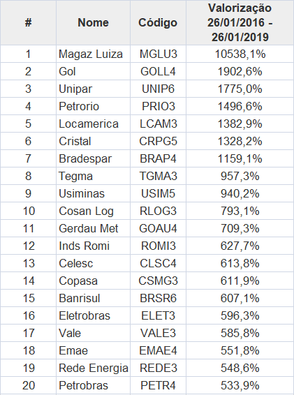 O acesso à lista de ações com os maiores resultados do Brasil inteiro…