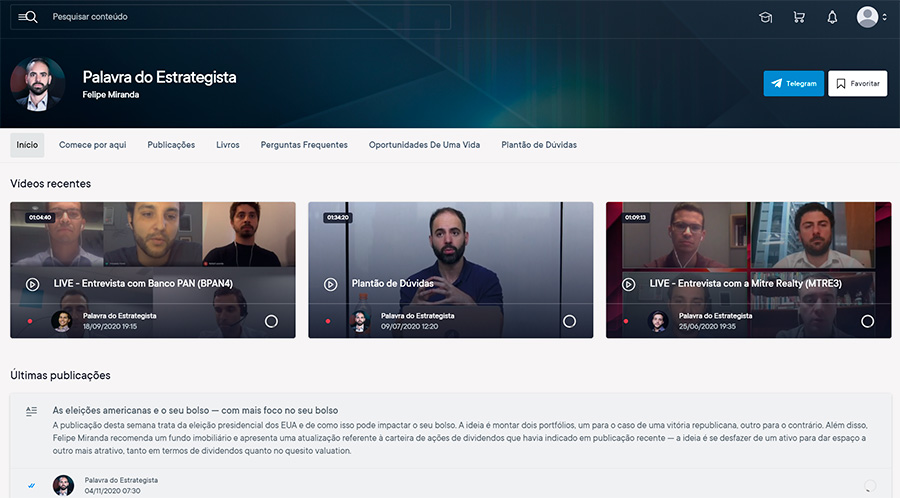 Ele manda áudios todo dia de manhã e à noite com as notícias relevantes do dia. Eu mesmo confesso que esses áudios são uma das únicas coisas que eu uso pra balizar as minhas próprias decisões de investimentos.