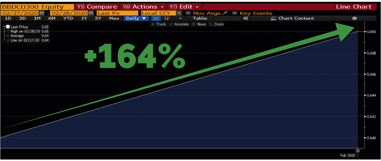 Um dia depois, conseguimos mais que dobrar o dinheiro investido nas puts de Bradesco.