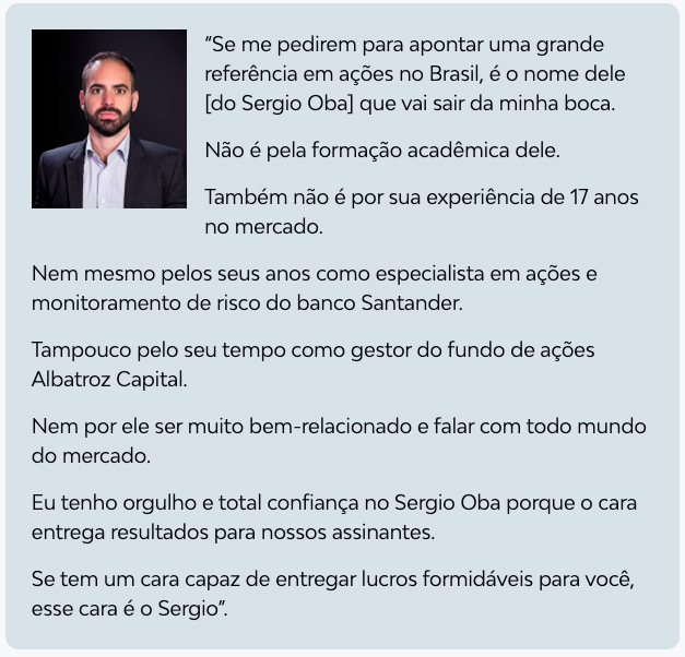 E terá a real oportunidade de construir um patrimônio multimilionário com as minhas indicações.