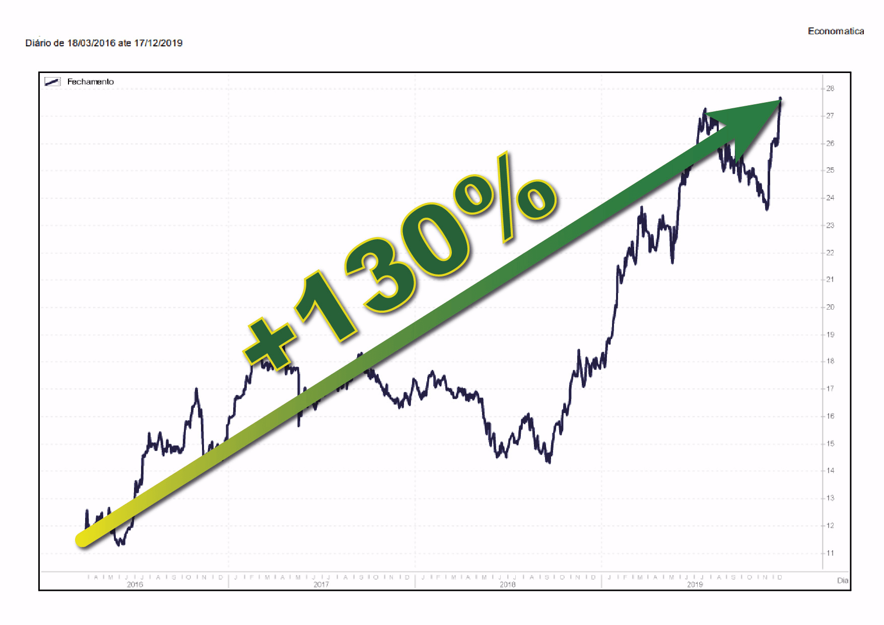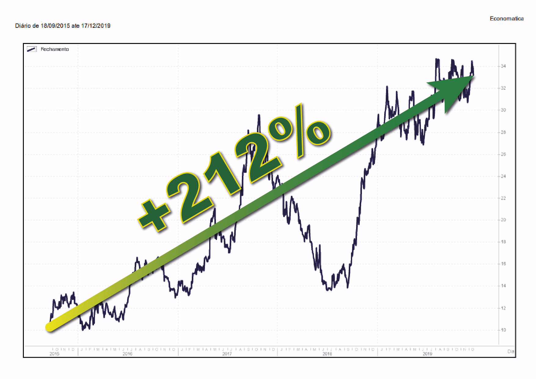 Até o último ano fechado, 2019, foram +225% de valorização.
