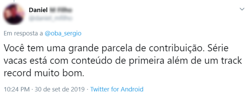 Mas eu espero sinceramente ver você aqui desse lado, conseguindo ganhar dinheiro.