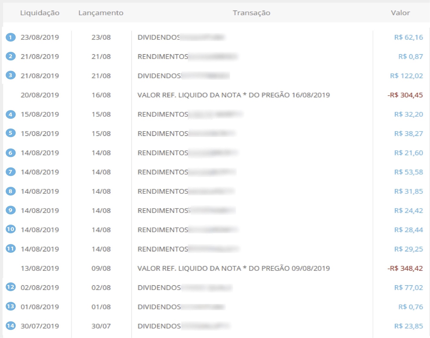 E, de forma constante, recebe um pinga-pinga de valores mais modestos: