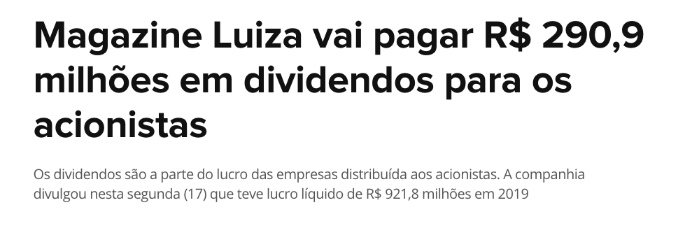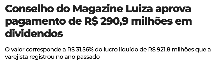 Este pagamento virá de uma empresa consolidada, uma gigante em seu ramo de atuação.