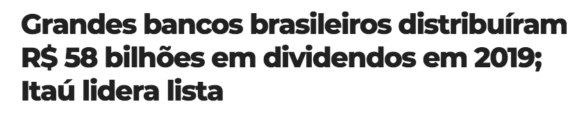 E, em 2019, somente os grandes bancos brasileiros pagaram cerca de R$ 58 bilhões em 'Cheques Gordos'.