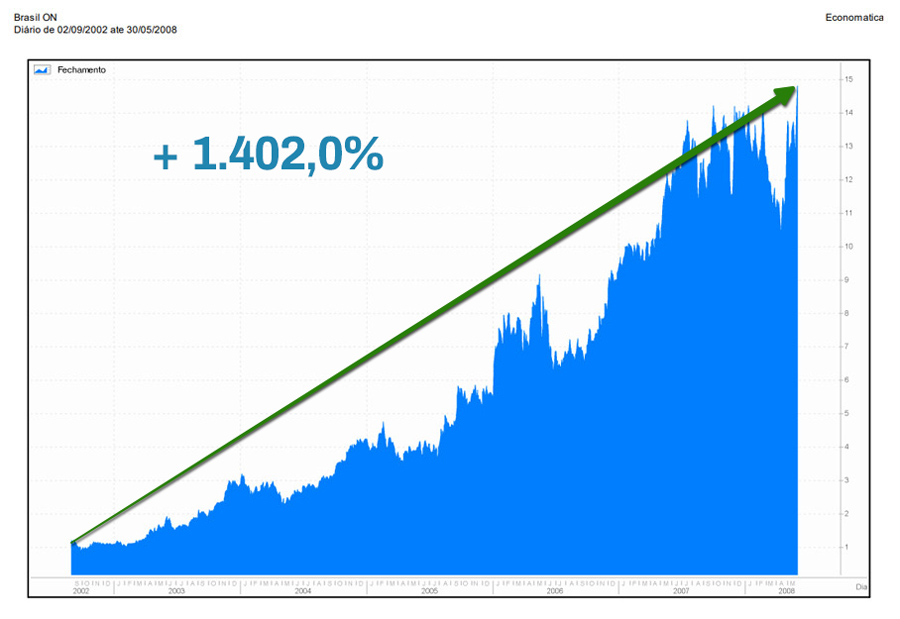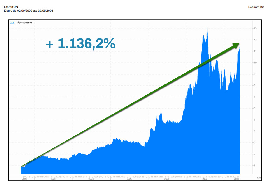Veja esta tabela com o desempenho de empresas assim no último bull market, de 2002 a 2008.