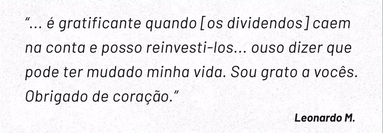 É prazeroso demais receber dividendos, você vê o dinheiro caindo na conta e vai pegando gosto pela coisa.