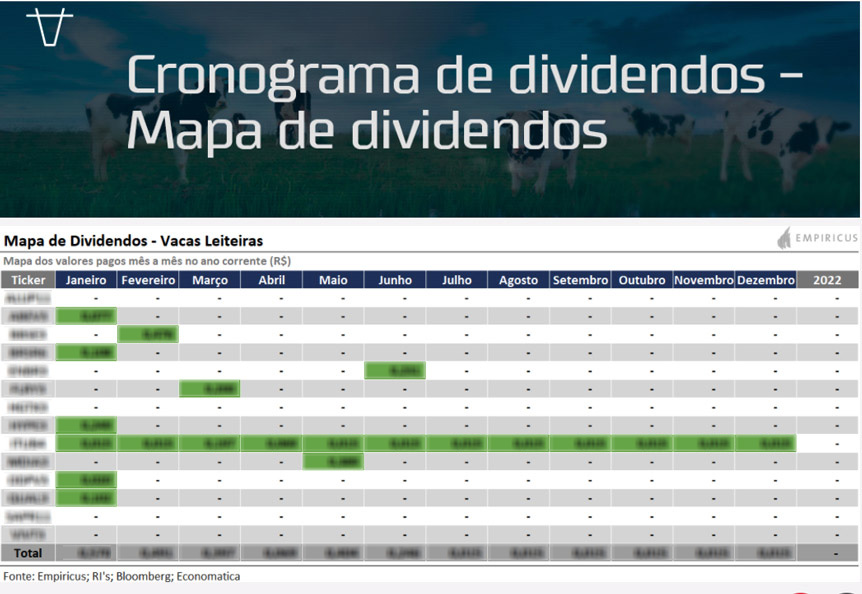 6 - Cronograma de Dividendos, para você ficar sempre a par de quando vai receber cada pagamento de dividendos; e