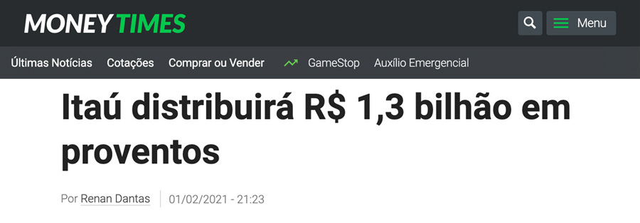 Os bancos, por exemplo, já começaram a anunciar sua distribuição de proventos…
