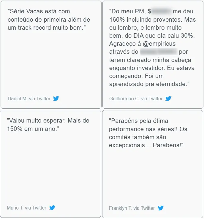 Assinantes únicos que estão mudando de patamar financeiro com as ideias de investimentos da Empiricus.